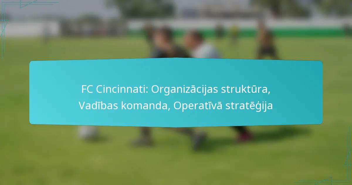 FC Cincinnati ir strukturēts ar visaptverošu organizatorisko shēmu, kas atbalsta tā vadības un operatīvās stratēģijas. Vadības komanda spēlē būtisku lomu kluba virzībā un sniegumā, nodrošinot tā konkurētspēju Major League Soccer. Ar fokusu uz efektīvām operācijām, spēlētāju attīstību un sabiedrības iesaisti, FC Cincinnati mērķis ir sasniegt ilgtspējīgu izaugsmi un panākumus gan laukumā, gan ārpus tā.