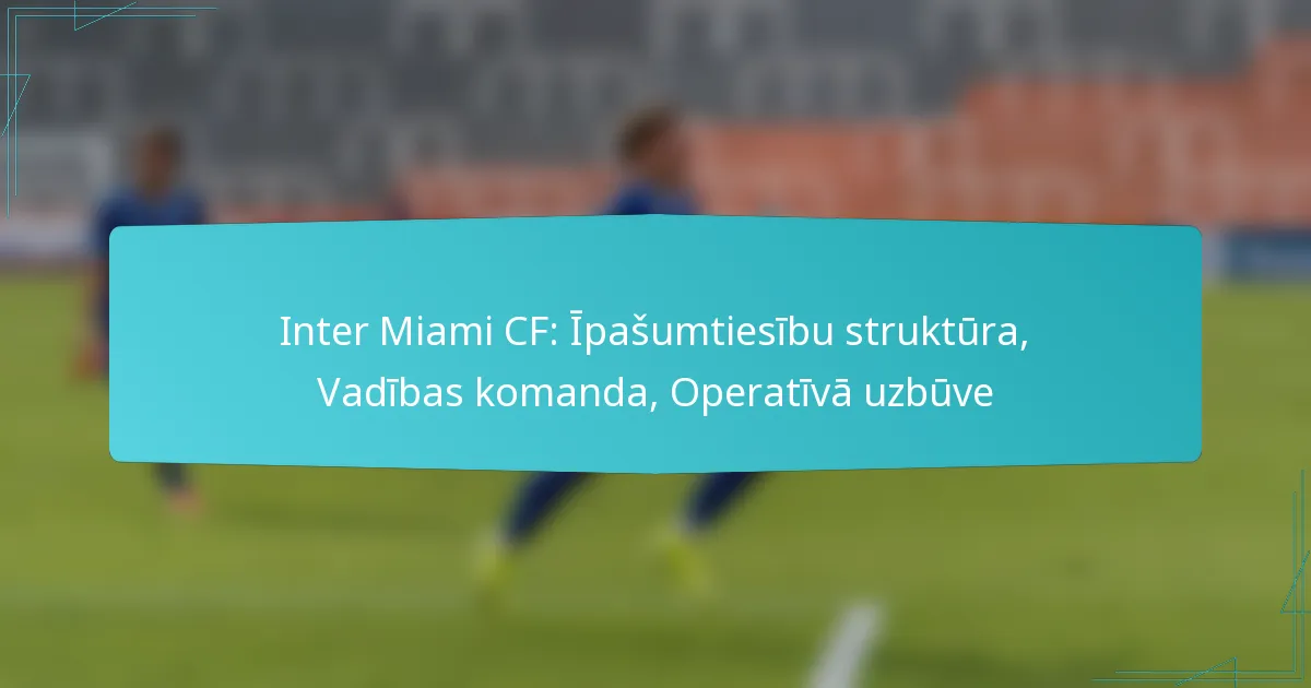 Inter Miami CF operatīvā uzbūve ir izstrādāta, lai atbalstītu tās konkurētspējīgās ambīcijas Major League Soccer (MLS) caur labi definētu vadības komandu, stratēģiskām atlases praksēm un fokusu uz spēlētāju attīstību. Šī struktūra uzsver sadarbību starp īpašniekiem, vadību un treneru personālu, lai radītu saskaņotu vidi panākumiem.