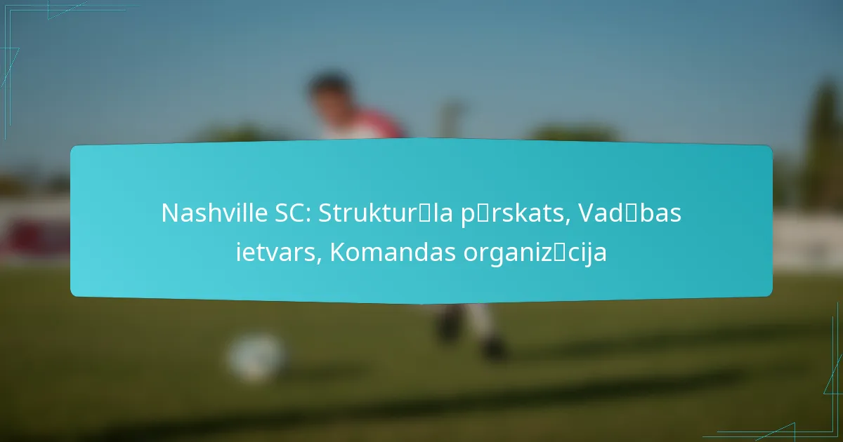 Nashville SC ir profesionāls futbola klubs, kas atrodas Nešvilā, Tenesī, un piedalās Major League Soccer (MLS). Klubam ir strukturēta vadības sistēma, kas ietver īpašumtiesības, izpilddirekciju un veltītu treneru komandu, kas visi kopā strādā, lai veicinātu komandas panākumus. Ar fokusu uz sadarbību starp nodaļām, Nashville SC mērķis ir optimizēt sniegumu un stiprināt kopienas iesaisti.
